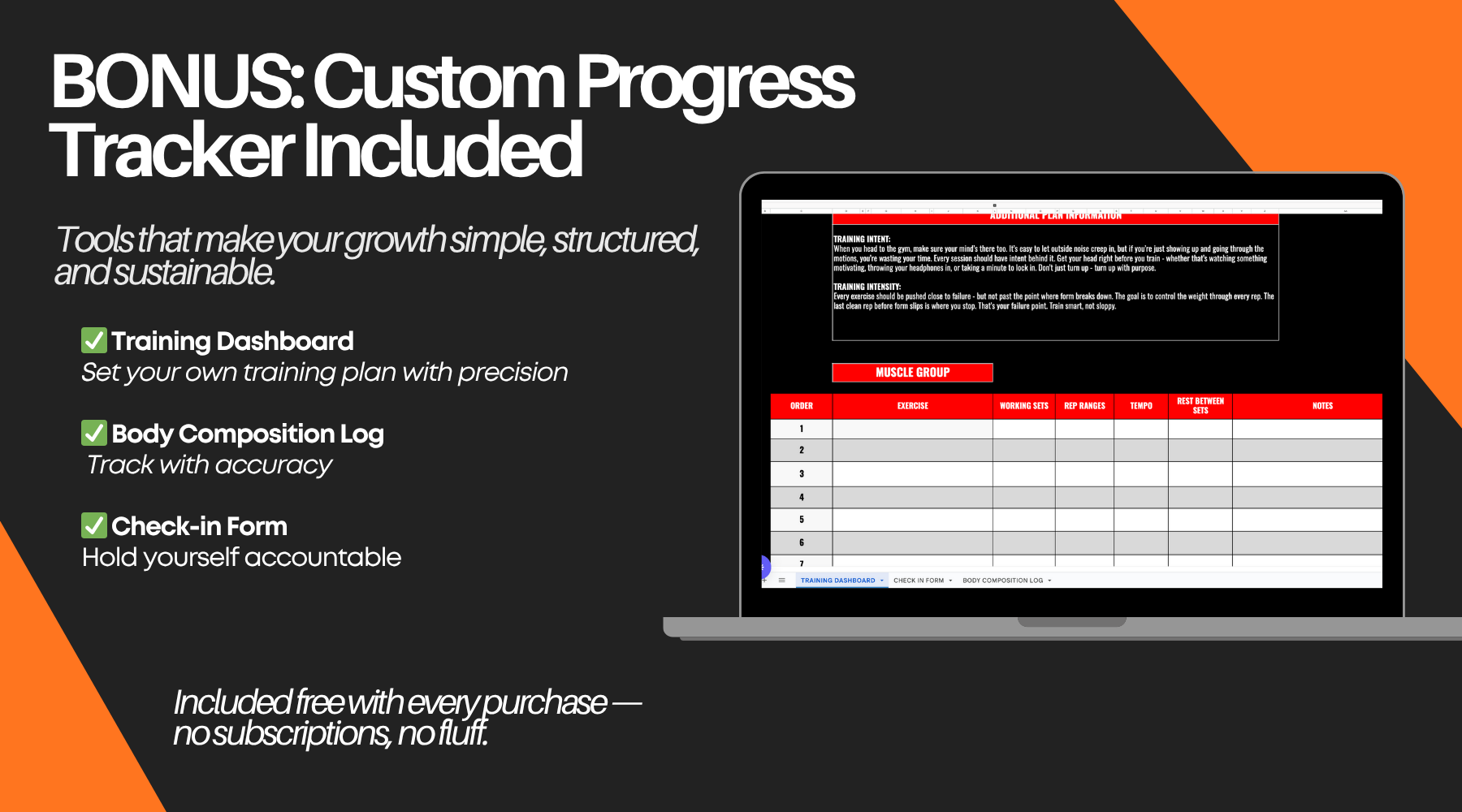 Your personal training log, check-in system, and progress tracker — built to keep you accountable and progressing week after week.